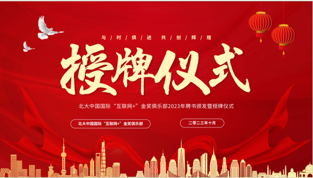 北京大学中国国际“互联网+”金奖俱乐部于2023年10月26日上午11:30举办了2023年授牌仪式。活动旨在促进北京大学具有创新精神、立足中国、全球视野的新时代创业企业家深度融合,互相成就,以推动国家科技自立自强和高质量发展,助力中国实现两个一百年奋斗目标和中华民族复兴。